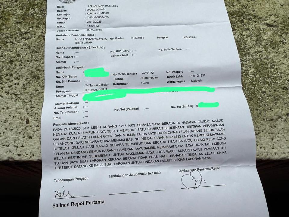 Pelancong China Didakwa Merosakkan Paparan Falun Gong & Uyghur di Luar Masjid Negara